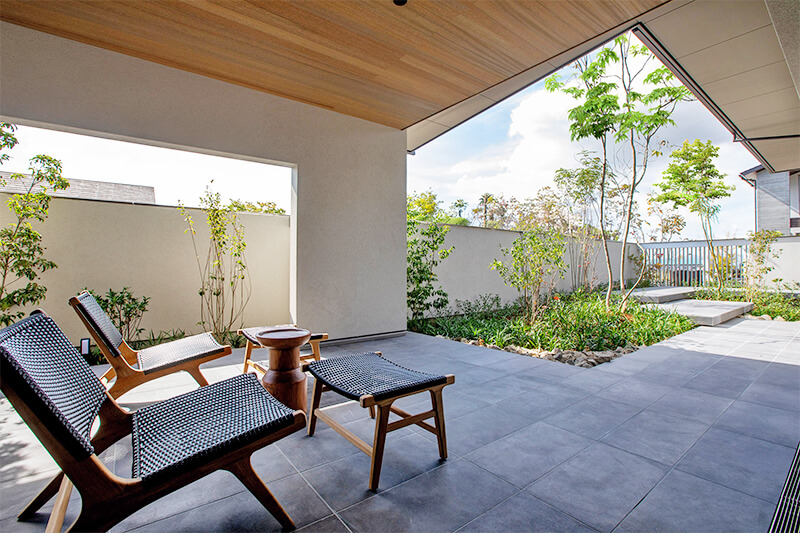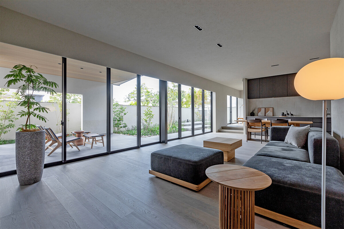 プライバシー性が確保された中庭が、室内と一体的につながる大開口・大空間が特長です。