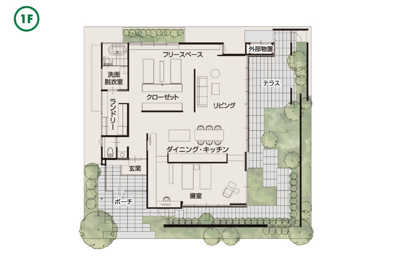 角地の開放感を存分に味わいながら、日常の延長線上で外とつながる暮らしを愉しめます。